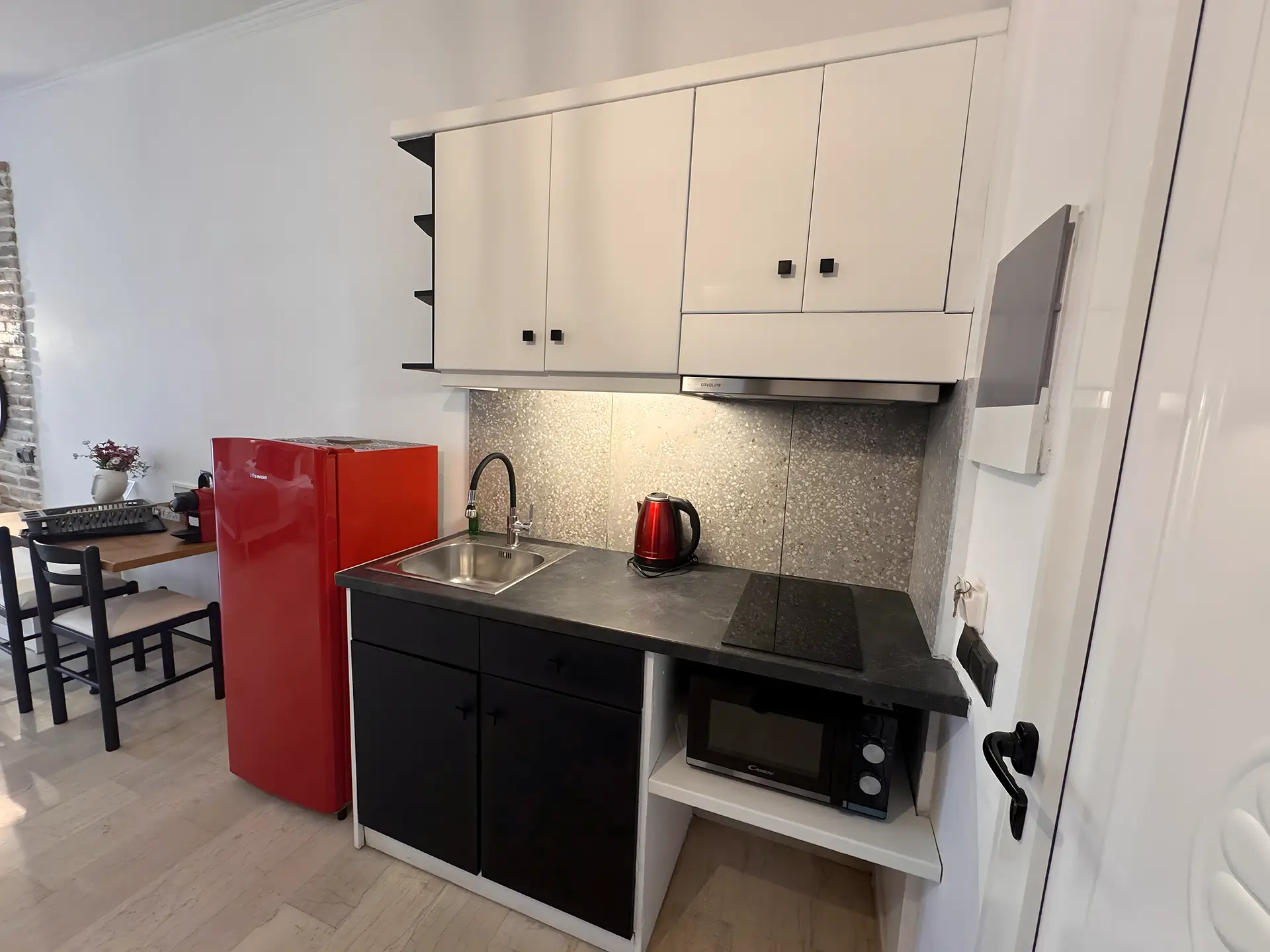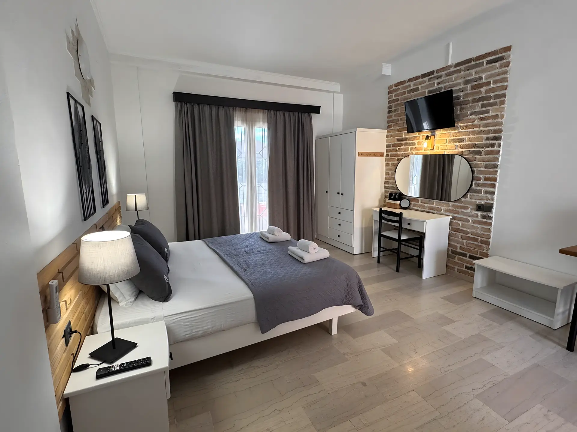 Charming and modern, our Studios are perfect for couples or solo travelers. Each features an open-plan layout with a cozy sleeping area, a compact kitchenette, and a private balcony or terrace where you can relax after a day in the sun. Every detail is designed for simplicity and comfort, the perfect base for exploring Corfu.